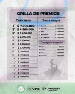 En los aspectos salientes de la reglamentación, la Comisión Interclubes, señala: El Concurso de Pesca se llevará a cabo el domingo 3 de AGOSTO de 2025 en Goya, provincia de Corrientes, y se regirá por el presente reglamento, que para ser oficial deberá estar firmado por Presidente, Secretario y Fiscal General de la Comisión Organizadora.