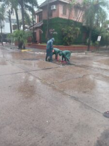 Operarios del PRODEGO realizan tareas de control y operación de las estaciones, además equipos de cuadrillas limpian bocas de tormenta y desobstruyen canales.