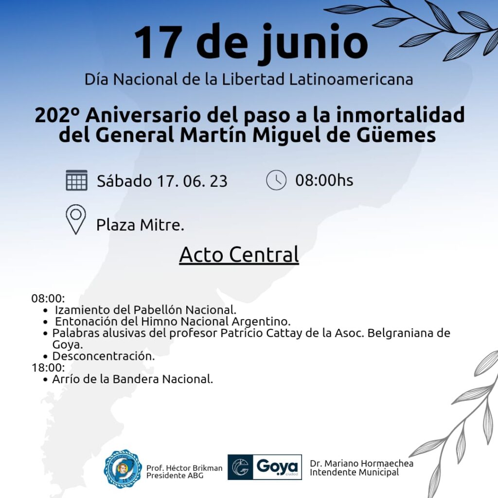 El próximo 17 de junio se conmemora el Día Nacional de la Libertad Latinoamericana, 202° Aniversario del paso a la inmortalidad del General Martín Miguel de Güemes.