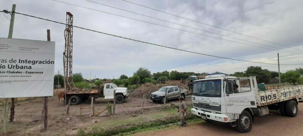 En la semana continuaron los trabajos, se ha realizado la perforación, más de 60 metros,  donde se está extrayendo agua, que va a ser parte del sistema de red de agua potable para el  Barrio El Chacal, consta de 3 mil metros, es una obra que se lleva adelante tras las gestiones del municipio en el programa Obras de Integración Socio Urbana gestionada ante Nación y que en este caso comprende a los barrios Chacal y Esperanza, cabe recordar que la semana pasada Mariano Hormaechea estuvo en el lugar cuando se daban inicios a las obras conversando en la oportunidad con los vecinos.