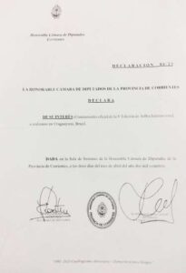 El Cónsul Ricardo Di Lelle recibió a los directivos de RRII Adriana Stalanich y Emiliano Gutiérrez en representación al Vice Gobernador de la Provincia de Corrientes Dr. Pedro Braillard Poccard. Los mismos entregaron de manera oficial la Declaración de Interés Provincial al Lanzamiento de la 8va. Edición de ArBra Internacional por la Honorable Cámara de Diputados de la Provincia de Corrientes.
