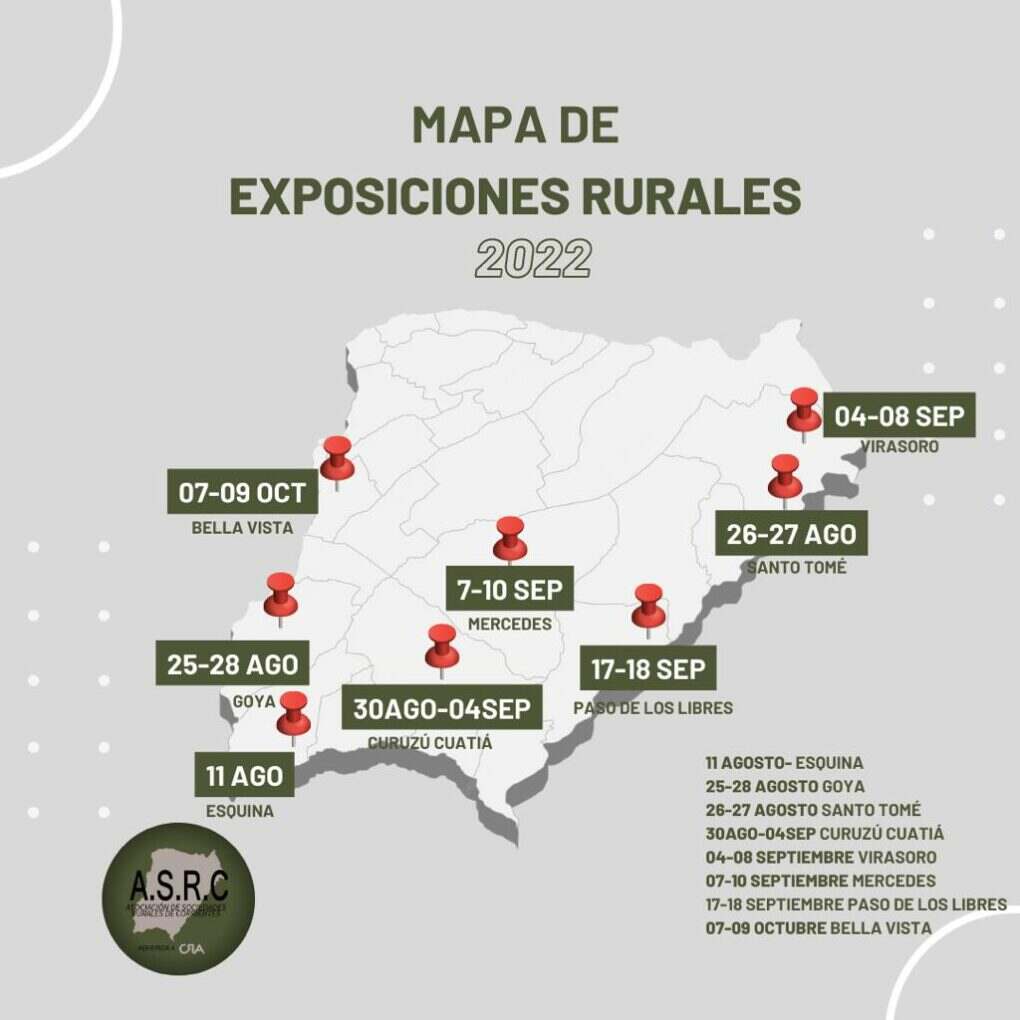 La Asociación de Sociedades Rurales dio a conocer el Mapa de las Exposiciones, de las distintas Sociedades Rurales de la Provincia de Corrientes.