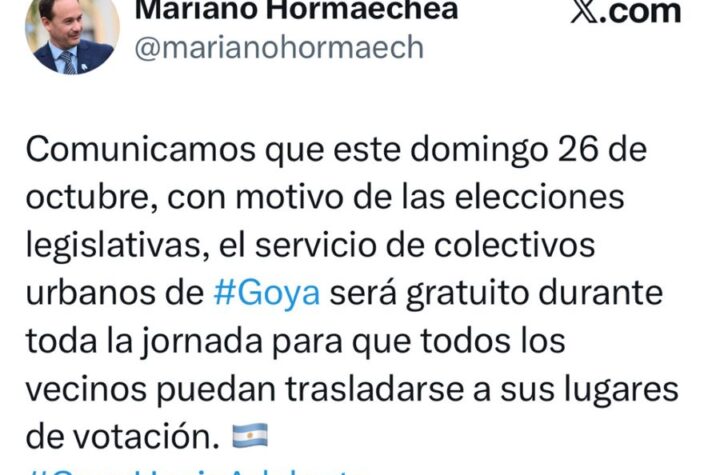 COLECTIVOS URBANOS GRATUITOS EN GOYA DURANTE LA JORNADA ELECTORAL DEL DOMINGO