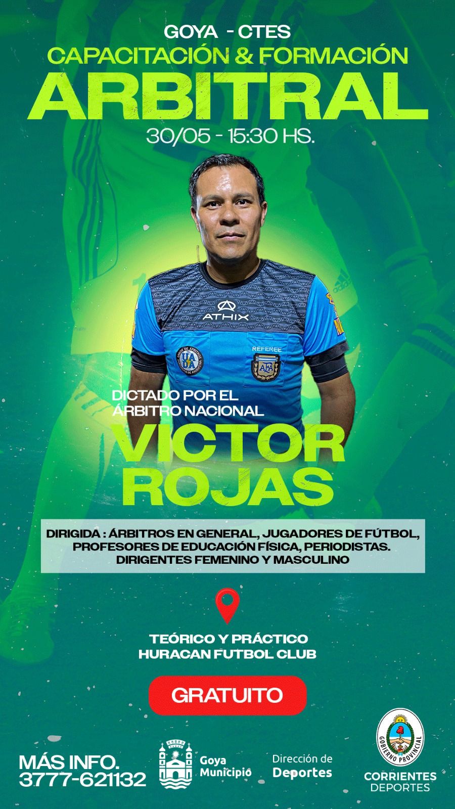 Con el apoyo de la Municipalidad desde la Dirección de Deportes, el Árbitro Nacional Víctor Rojas Aguirre ofrecerá un espacio formativo en Goya el próximo jueves 30 de mayo.