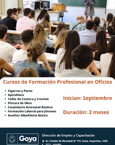 Educación Locales LA DIRECCIÓN DE EMPLEO Y CAPACITACIÓN LANZA LA PREINSCRIPCIÓN PARA NUEVOS CURSOS DE FORMACIÓN PROFESIONAL EN OFICIOS 2 años atras