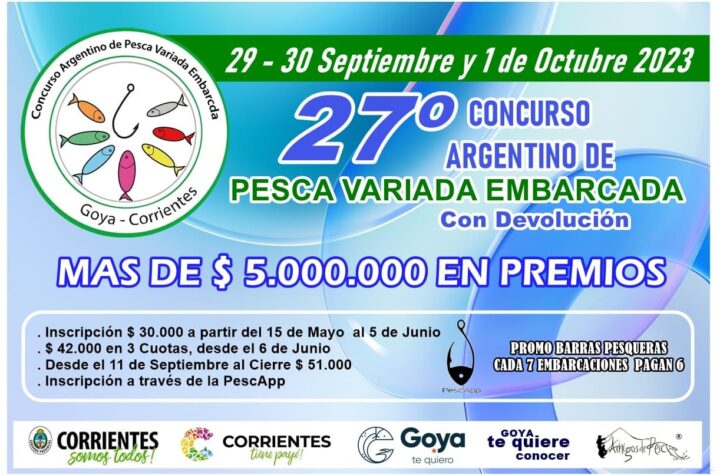 Espectáculos Generales Locales ABIERTA INSCRIPCIÓN DE EQUIPOS PARA EL CONCURSO ARGENTINO DE PESCA VARIADA EN GOYA 3 años atras