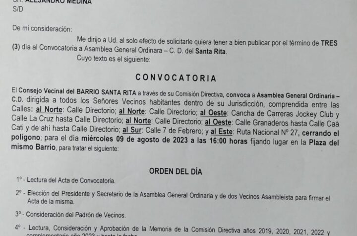 ASAMBLEA GENERAL ORDINARIA DEL BARRIO SANTA RITA