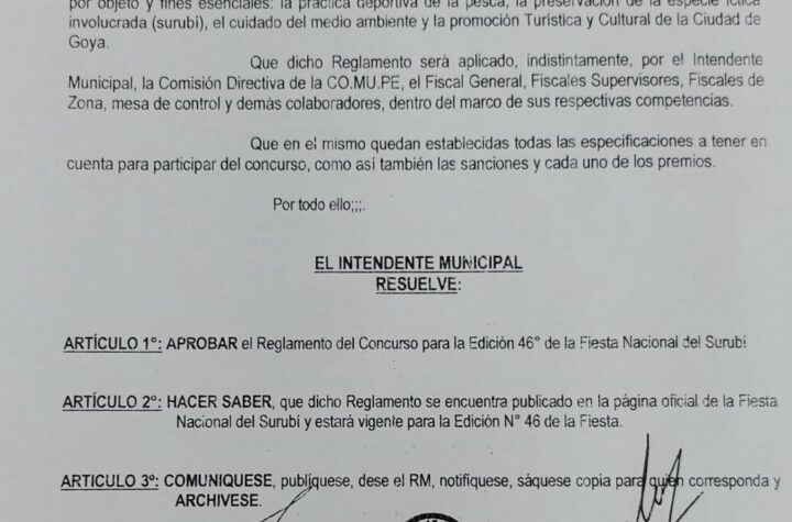 Generales Locales Política APROBANDO EL REGLAMENTO DE LA EDICIÓN 46° DE LA FIESTA NACIONAL DEL SURUBÍ 2 años atras