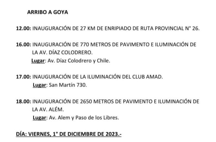 Locales Provinciales EL GOBERNADOR CUMPLIRA INTENSA ACTIVIDAD DURANTE LOS DIAS JUEVES Y VIERNES EN GOYA 2 años atras