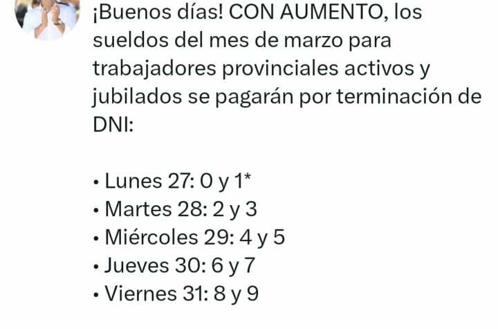 Provinciales SUELDOS DE MARZO: VALDÉS CONFIRMÓ DÍAS DE PAGO CON AUMENTOS Y PROVINCIA ACUMULA INVERSIÓN SALARIAL MENSUAL DE $17.000 MILLONES 3 años atras