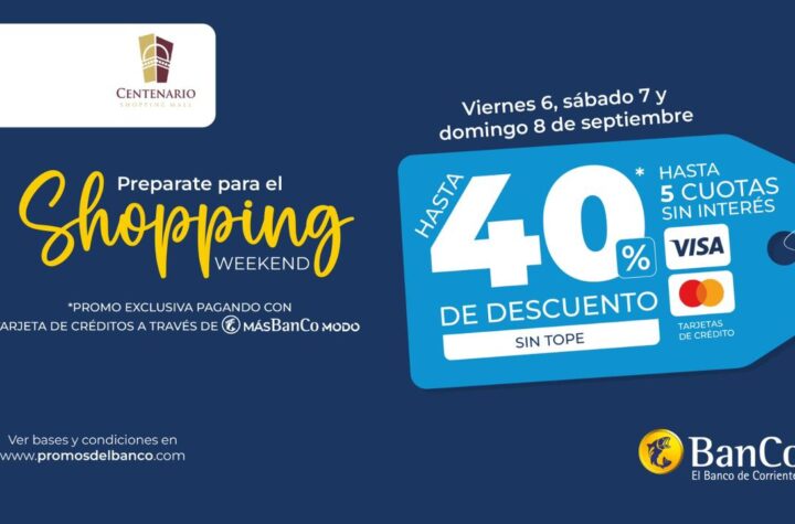 Provinciales 6, 7 Y 8 DE SEPTIEMBRE: EL BANCO DE CORRIENTES BRINDARÁ HASTA UN 40% DE DESCUENTO CON LA PROMOCIÓN “SHOPPING WEEKEND” 1 año atras