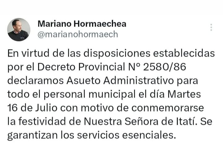Generales Locales Religiosas ASUETO ADMINISTRATIVO MUNICIPAL POR LA FESTIVIDAD DE NUESTRA SEÑORA DE ITATÍ 1 año atras