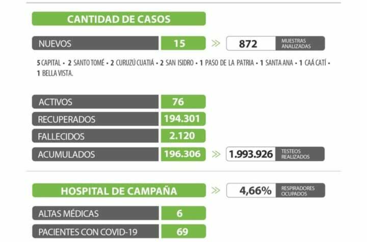 Provinciales Salud CORRIENTES REGISTRA 15 CASOS NUEVOS DE CORONAVIRUS: 5 EN CAPITAL Y 10 EN EL INTERIOR 3 años atras