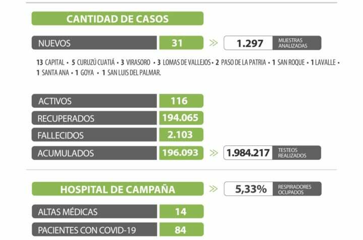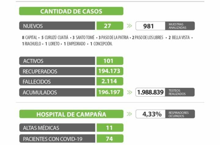 Locales Salud CORRIENTES REGISTRA 29 CASOS NUEVOS DE CORONAVIRUS: 12 EN CAPITAL Y 17 EN EL INTERIOR 3 años atras