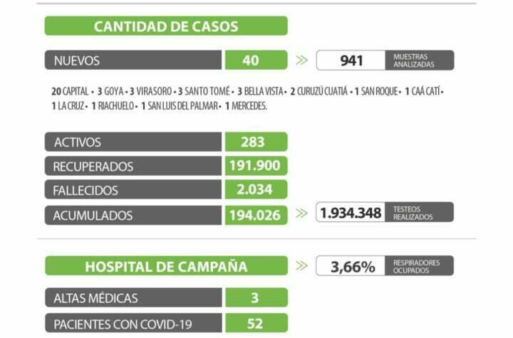 Provinciales Salud HOY VIERNES 1 DE JULIO EN CORRIENTES SE REGISTRA 40 CASOS NUEVOS DE CORONAVIRUS: 20 EN CAPITAL Y 20 EN EL INTERIOR 3 años atras