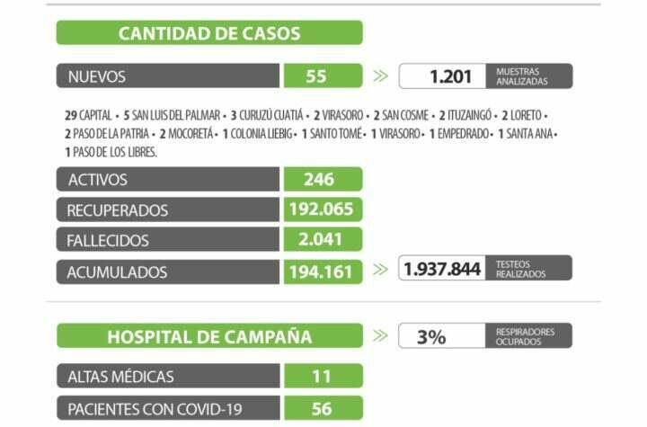 Provinciales Salud CORRIENTES REGISTRA 55 CASOS NUEVOS DE CORONAVIRUS: 29 EN CAPITAL Y 26 EN EL INTERIOR 3 años atras