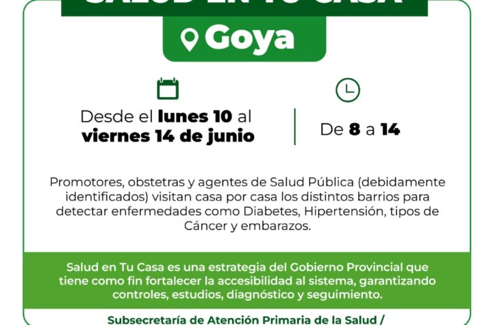 Locales Salud “SALUD EN TU CASA”: ESTRATEGIA PROVINCIAL PARA FORTALECER LA ATENCIÓN MÉDICA EN GOYA 1 año atras