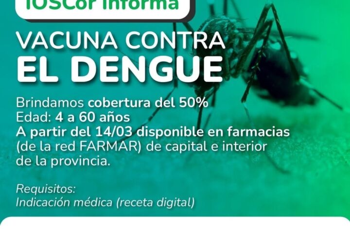 Provinciales Salud EL IOSCOR HABILITÓ LA COBERTURA DEL 50% PARA LA COMPRA DE LA VACUNA CONTRA EL DENGUE 2 años atras