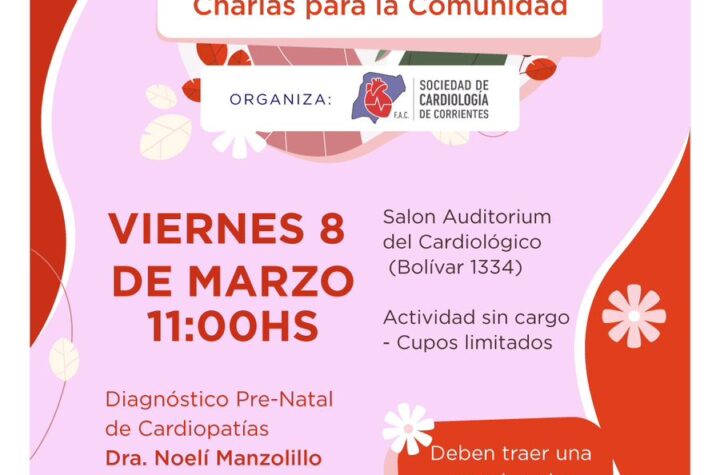 Educación Provinciales Salud POR EL 8 DE MARZO, EL INSTITUTO DE CARDIOLOGÍA BRINDARÁ UNA CHARLA SOBRE FACTORES DE RIESGO EN EL CORAZÓN DE LAS MUJERES 2 años atras