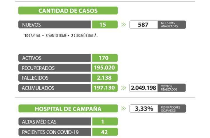 Provinciales Salud CORRIENTES REGISTRA 15 CASOS NUEVOS DE CORONAVIRUS: 10 EN CAPITAL Y 3 EN EL INTERIOR 3 años atras