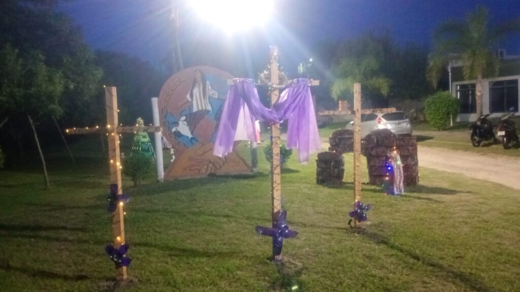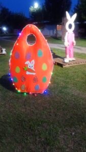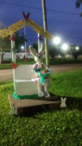 Las Mujeres Emprendedoras que desarrollan sus actividades y capacitación en la Biblioteca Marta Elgul de París, junto a la comisión del barrio, como todos los años recrean el espacio público de ese sector de la ciudad, con elementos motivados en la Pascua de Resurrección.