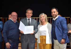 Durante la velada de celebración del 90º aniversario de la Asociación de Comercio, Industria y Producción de Goya, los concejales Gabriela Refojos; Juan Domingo González y José Novello, hicieron entrega a Iván Vilas, de la Copia de la Resolución del HCD que declaró de Interés Municipal.