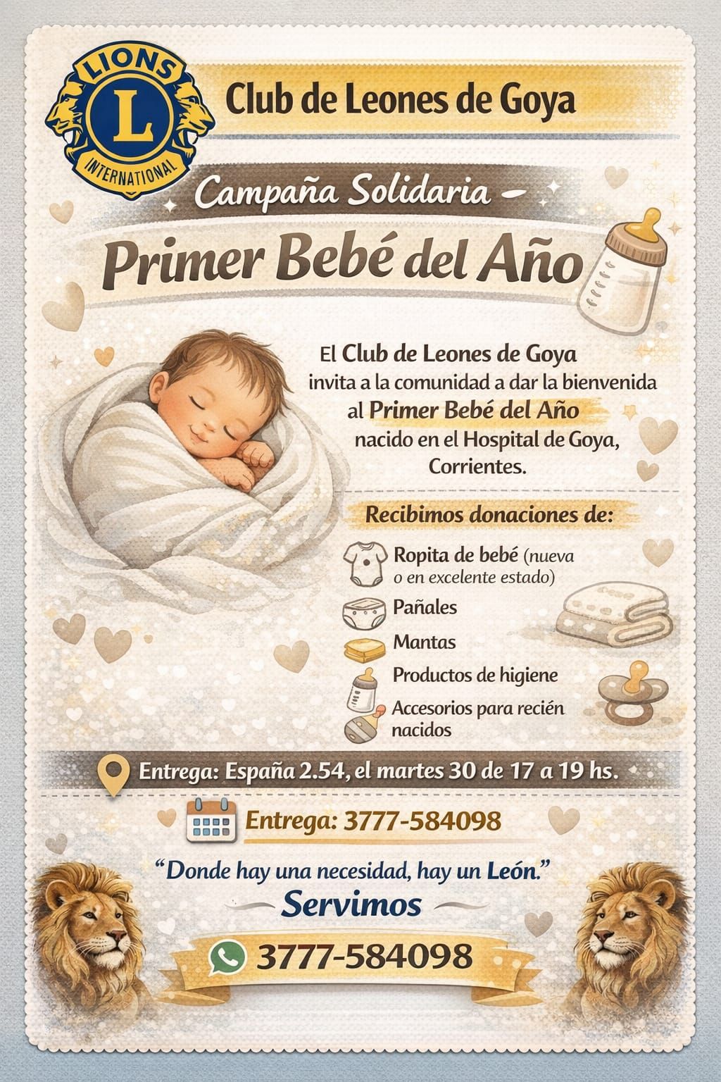 El Club de Leones de Goya invita a la comunidad a sumarse a esta acción solidaria para dar la bienvenida al Primer Bebé del Año, nacido en el Hospital de Goya.
