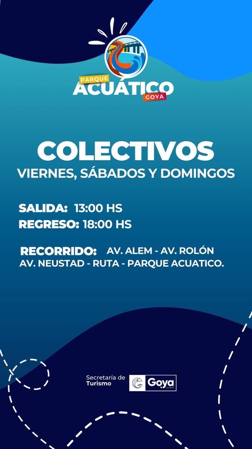 Cabe señalar que el colectivo que hace este trayecto está perfectamente identificado con el destino PARQUE ACUÁTICO GOYA
