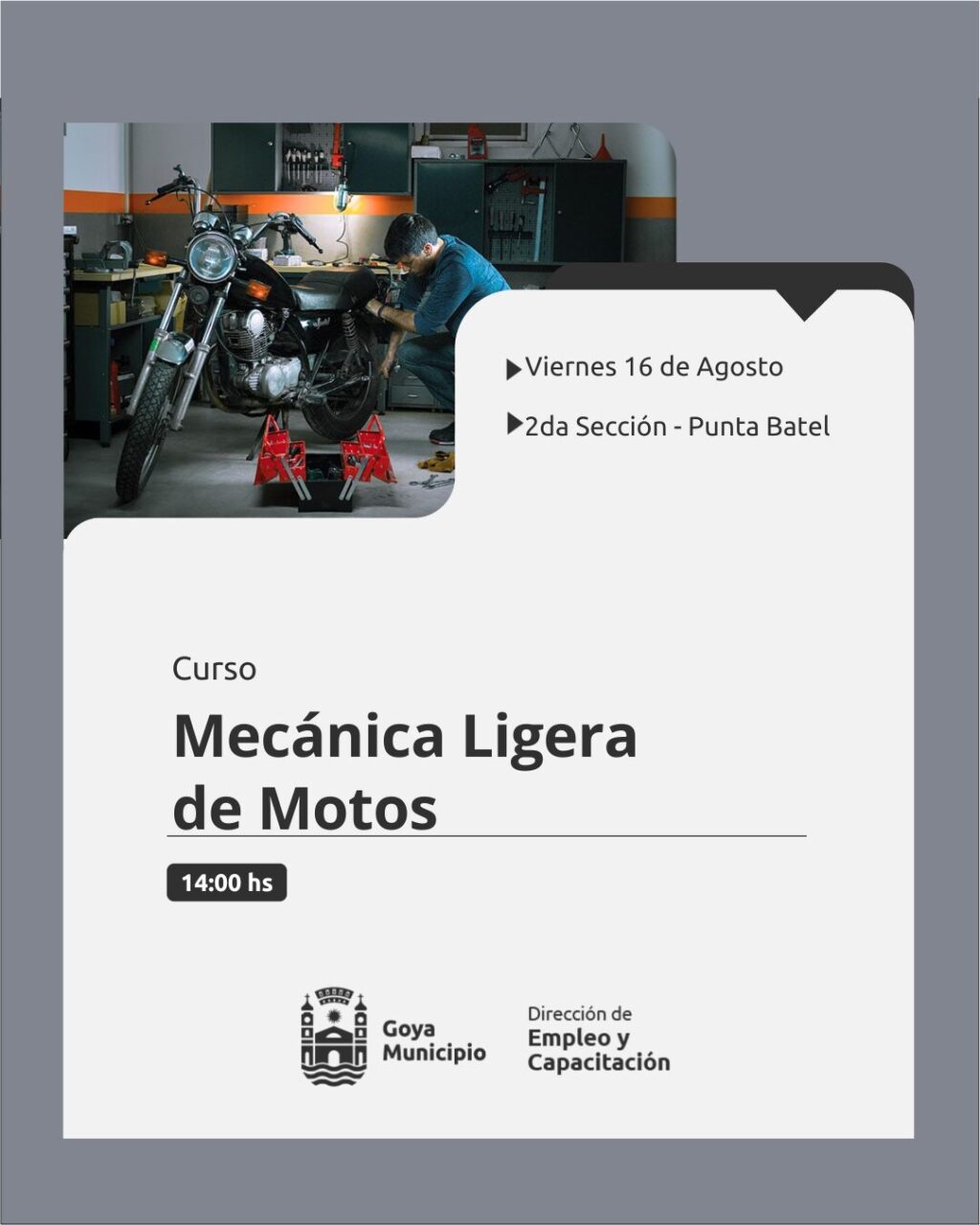 Damián Pini explicó: “Es una zona que requiere capacitación; la Dirección de Producción Primaria viene desarrollando distintos talleres, desde nuestra dirección junto a esa área estamos ofreciendo este curso de Mecánica Ligera de Motos, a iniciarse el próximo 16 de agosto, los días viernes de 14 a 18 horas, de manera presencial en el salón de la Capilla “Cruz de los Milagros” de Punta Batel. La inscripción se habilitó con un cupo de hasta 30 participantes, podrán hacerlo de manera virtual, bajando los datos desde el número celular 3777 821003; los datos que cargan se impacta en el sistema para tener esa información”.
