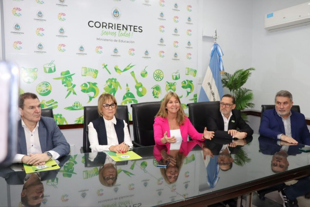 La ministra de Educación, Práxedes López y el interventor de Lotería Correntina, Héctor Javier Bee Sellares, encabezaron esta mañana la firma de un convenio de colaboración entre el Instituto de Loterías y Casinos de Corrientes y la cartera educativa.