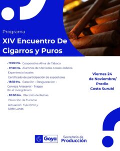El jueves 23 comenzará el 14º Encuentro de Cigarros y Puros. El evento se realizará en Costa Surubí de Goya. Contará con la participación de expertos de la República Dominicana, de la UNNE,  y otras organizaciones.