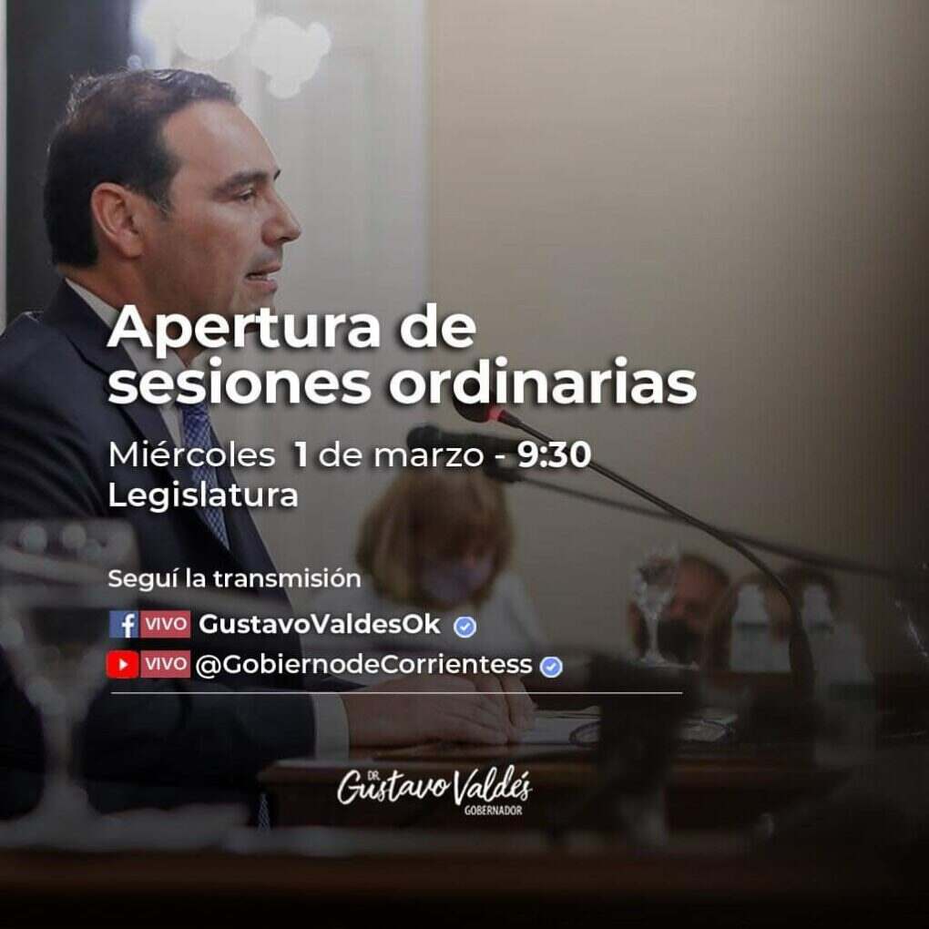 Cabe recordar que el pasado viernes, Gustavo Valdés anticipó a la prensa que el discurso que emitirá este miércoles será “claro” en el sentido del “año electoral”, que está iniciando, por tanto “de decisiones”. Al respecto, deseó en la ocasión que “podamos estar encauzados en un proceso que nos encuentre unidos a los argentinos, que la ‘grieta’ no nos mate, que la campaña política nos sea leve y que tengamos la posibilidad de elegir al mejor candidato a Presidente de la Nación, para que los argentinos podamos reflexionar y elegir al mejor, por una buena Presidencia y la salud del país”.