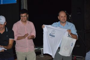 Para finalizar la presentación obsequiaron al Intendente Mariano Hormaechea y al Director de Turismo Sebastián Candia, gorras, remeras y tazas con diseños gráficos de la marca Goya Ciudad.