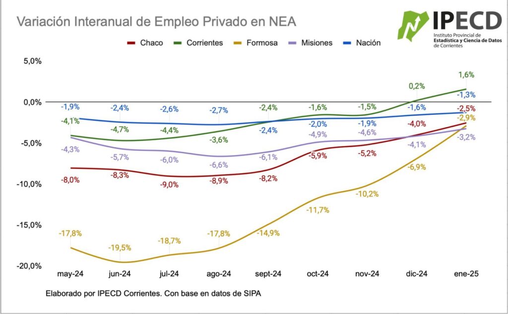 Corrientes se ubica entre las 4 provincias con mayor crecimiento de empleo privado registrado en enero de 2025 con respecto al mismo mes del año anterior.