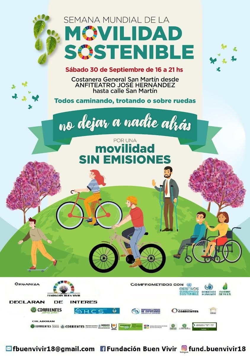 La Fundación Buen Vivir llevará a cabo este sábado de 16 a 21 horas, su Jornada de Movilidad Sostenible en la Costanera “General San Martín” de la ciudad de Corrientes. Cuenta con el apoyo del Gobierno provincial, fue declarada de Interés por la Vicegobernación, la Cámara de Diputados de Corrientes, la Municipalidad y el Concejo Deliberante de la Capital, entre otros.