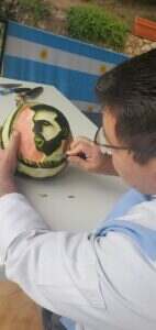 Explicó el cheff que el trabajo de tallado de la sandía española fue diferente porque “la sandía de aquí es diferente a la que tenemos, hay que tener mucho cuidado para trabajar pero para mí fue un placer porque mientras trabajaba y hacía el taller disfrutaba de lo que todos los argentinos estábamos viviendo”.