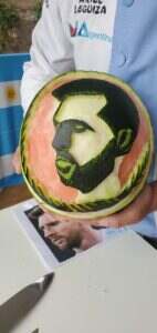 EN MEDIO DEL FUROR MUNDIALISTA, UN CORRENTINO TALLO FRASE ÉPICA Y ROSTRO DE MESSI EN UNA SANDÍA