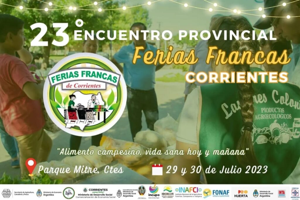 Sábado 29 y Domingo 30 de julio, en el Parque Mitre. Se viene el 23° Encuentro Provincial de Ferias Francas de Corrientes.