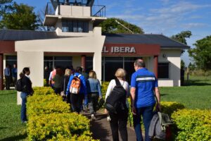 La delegación del Ministerio de Turismo de Corrientes en Mercedes, junto a la Cámara de Turismo provincial, dio la bienvenida este jueves a los pasajeros del primer vuelo de la empresa Amichi desde Buenos Aires al aeropuerto del Iberá.