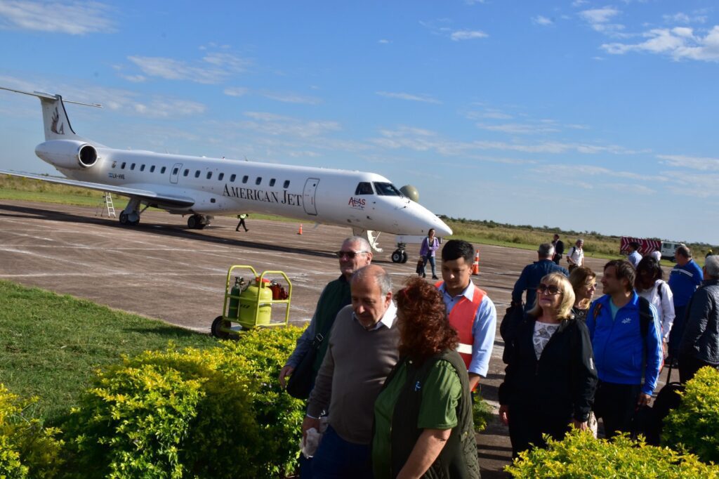 El vuelo aterrizó a las 10.17 de este jueves en una aeronave de 49 plazas de American Jet. Inicialmente estuvo programado para el pasado domingo 21, pero las inclemencias del tiempo obligaron suspenderlo. Recibieron a los pasajeros el delegado de Turismo, Ricardo Mambrín y referentes de la Cámara de Turismo provincial.