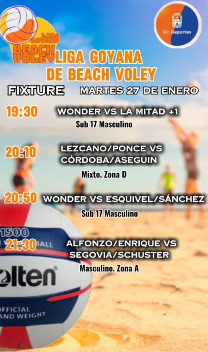 Con el auspicio de la Municipalidad de Goya, a través de la Dirección de Deportes, este martes 27 continuará disputándose la segunda fecha del certamen playero organizado por la Liga Goyana de Beach Vóley.