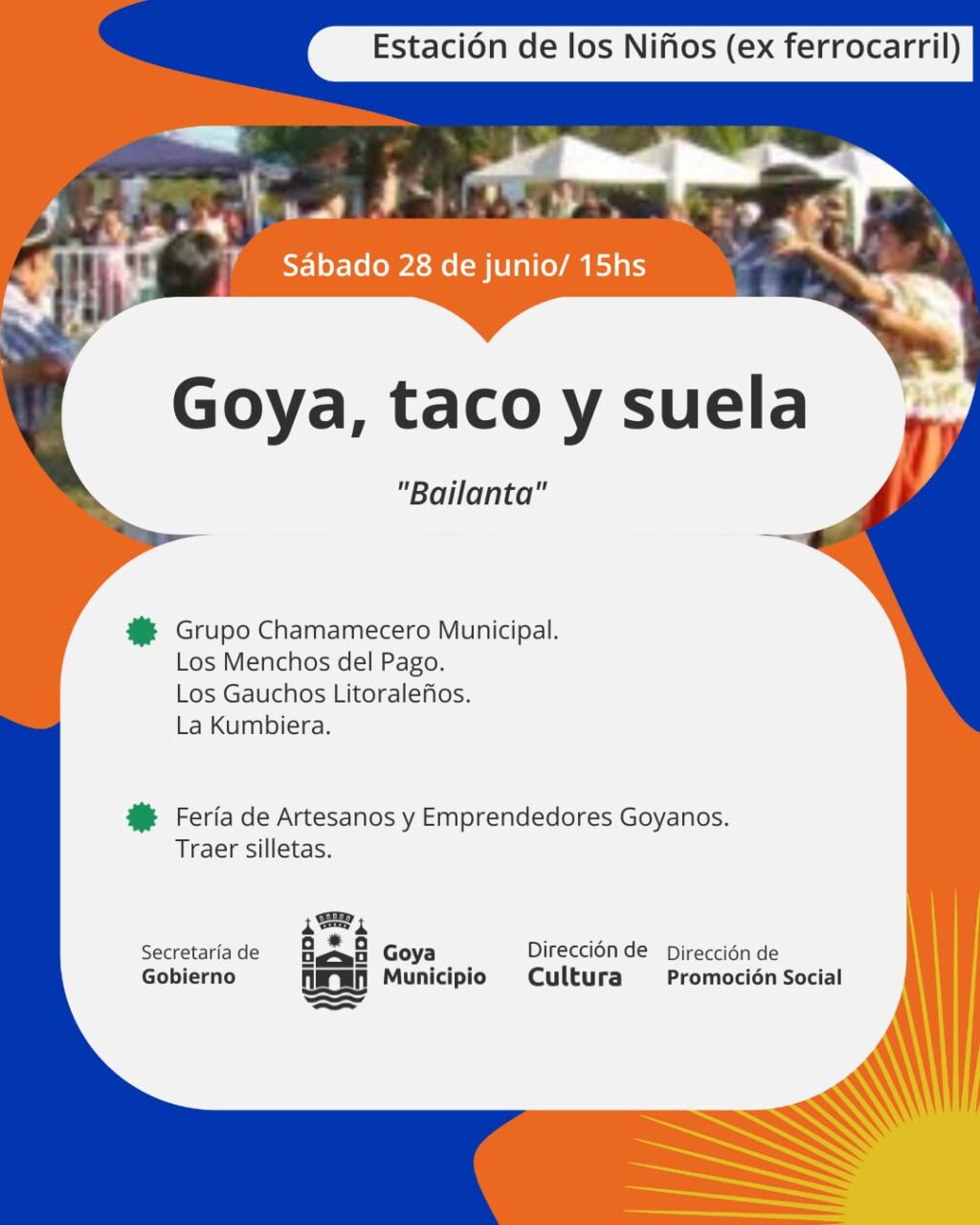 La Municipalidad de Goya, a través de la Secretaría de Gobierno, de la Dirección de Cultura y de Promoción Social presentan “Goya, taco y suela” evento musical para toda la familia.