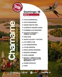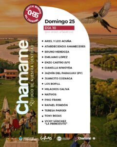 En el epicentro de la Fiesta serán diez noches protagonizadas por los principales exponentes de este género que amalgama el sentir y la cultura correntina. Habrá también artistas invitados como Soledad, Los Tekis, Jorge Rojas, Nahuel Pennisi, Los Nocheros, el Chaqueño Palavecino y chamameceros de Brasil, Paraguay y Uruguay.