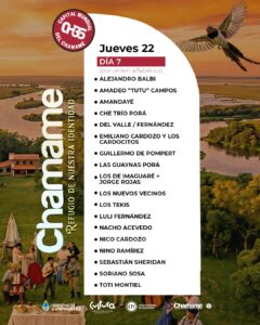 La presidente del Instituto de Cultura de Corrientes, Lourdes Sánchez, manifestó al respecto que “esta programación y la Fiesta Nacional del Chamamé está pensada para todos los correntinos, y por supuesto, para los turistas, medios y visitantes que vienen a Corrientes exclusivamente a vivir la experiencia del chamamé, siendo la cultura y el turismo vitales para motorizar la economía”.