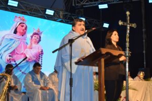 En este marco jubilar que estamos viviendo celebrando los dos mil veinticinco años del nacimiento de Jesús con el lema peregrino de la esperanza, esta peregrinación o procesión que realizamos nos recuerda a nosotros que somos peregrinos, vamos caminando y no vamos solos, vamos tomados de la mano de María porque no llegamos a Jesús sin María, es la peregrina de la esperanza que camina junto a su pueblo, su pueblo sufriente, su pueblo humilde, su pueblo fiel. Estamos caminando juntos en esta iglesia sinodal.