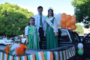 De la Colectividad de Irlanda Luciana Olivetti fue consagrada 1ª Princesa, los atributos fueron colocados, la Banda, el director de Estadísticas Andrés Zajarevich; la Corona el Secretario de Desarrollo Humano Julio Canteros, el presente floral la comunidad de Colombia, los obsequios la directora del Ballet Oficial Carolina Salas Araujo