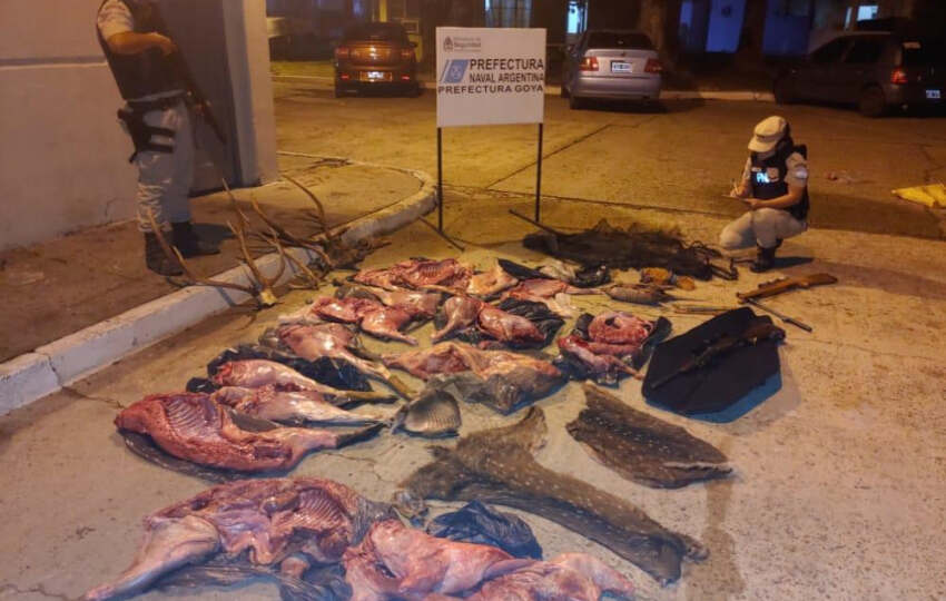 Personal de Recursos Naturales y de la Prefectura Goya secuestraron armas y más de 200 kilos de carne producto de la caza furtiva. Los infractores tenian 2 kg de carne de tatú mulita, 30 kg de carne de ciervo, 100 kg de carne de carpincho y 4 Kg de carne de liebre.
