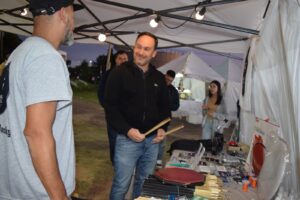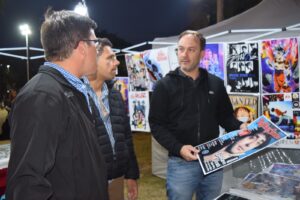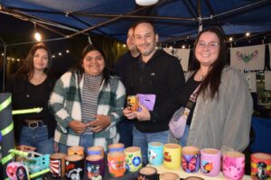 No solo el rock, los emprendedores ocuparon el espacio de La Playita, también se creó el momento desde el arte para sensibilizar sobre el día del cáncer, en ese sentido Manuel Caamaño, médico de profesión, Director del Servicio de Ginecología del Hospital Regional, un apasionado, aficionado a la pintura, de allí su expresión desde el arte en ese sentido: “Nosotros apoyamos desde la cultura, desde el arte queremos llegar a los ciudadanos por eso optamos por ese espacio de gran convocatoria, para concientizar sobre esta patología del cáncer, me involucro porque es mi actividad, invitando a la sociedad a que se informe, se interiorice, haga el autoexamen, se asesores, nosotros como para del grupo “Chamigo Pintores”, nos encontramos en todo el país, algunas de las obras que estamos exponiendo han participado en varios certámenes nacionales, andamos por todos lados con este grupo, nos dedicamos a esta pasión, nosotros a la profesión la medicina, junto a mi esposa Cecilia Alonso, por eso nos juntamos para expresar desde la pintura este mensaje de concientización, sensibilización sobre el cáncer.”