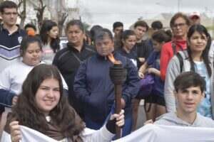 En Costa Surubí, estuvieron muchos estudiantes esperando la llegada de la antorcha. Incluso en el escenario “Juan Melero”, se congregaron decenas de jóvenes con banderas de todos los colegios. Luego hicieron su entrada las banderas de ceremonias de varios colegios y seguidamente se entonó el Himno Nacional Argentino. La particularidad es que la canción patria también fue interpretada por la joven Agustina Pilar García, alumna del 2º A del Instituto Presbítero Manuel Alberti. Y simultáneamente interpretada en lengua de seña por alumnas del 6º año Biológico y Económico del Centro de Formación Profesional “Magdalena Güemes de Tejada”.