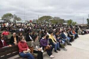 En el momento de la intervención del obispo Adolfo Canecín, el pastor diocesano realizó la invocación religiosa y bendición de todos los actos de la Estudiantina. En los pasajes centrales de su alocución dijo el obispo: “Es importante celebrar la vida el Día de la Primavera, el Día del Estudiante, que hermoso, también, se ha reconocida quien nos convoca es nuestro Dios sea cual fuera la concepción religiosa que cada uno podamos tener, en una actitud de respeto a la libertad religiosa, a la pluralidad de concepciones, que importante, el papa francisco suele repetir algo que él lo vive. Siendo como es el, un adulto mayor y por la circunstancia de salud, hoy que lo trasladan en silla de rueda, sin embargo él no se detiene. El Papa suele decir que la juventud es un estado del corazón que se traduce en una actitud de emprendimiento, de seguir creando, de seguir soñando. Esta persona que para nosotros los que tenemos fe cristiana, católica es muy importante (y para la humanidad toda), él en su vida nos está revelando este estado del corazón, esta actitud ante la vida. Y el estado del corazón que lo tenemos que ver en cuatro direcciones. Una actitud hacia la creación, una actitud de respeto, de valorización que se traduzca en un compromiso de cuidar y administrar nuestra casa común, el planeta tierra que alberga a miles de millones de persona, pero que en el contexto del universo es como un granito de arena, este planeta, nuestra casa común que hoy se está quejando mucho a su manera. El cambio climático es expresión de la queja de nuestro planeta tierra. Pero de manera particular con los jóvenes. Qué son los que se van a quedar en los próximos decenios. Asimismo, el pastor Churruarin tuvo a su cargo una bendición”.